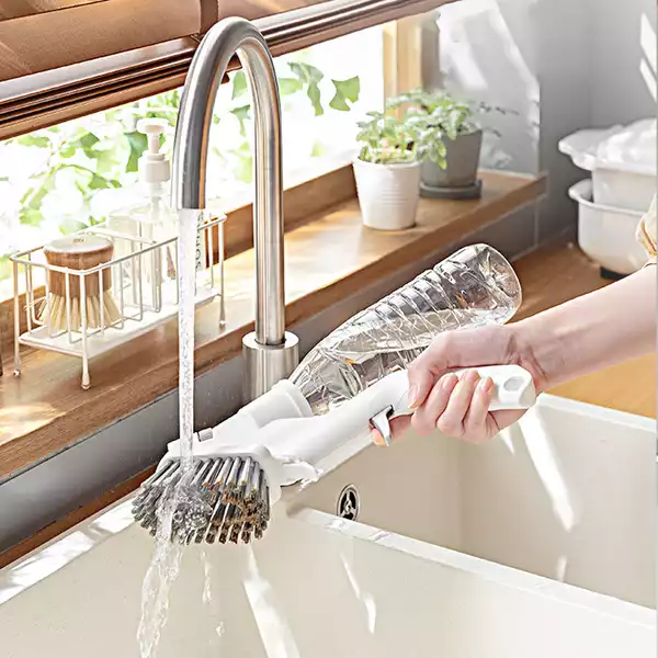 Cọ rửa dạng xịt nước, phù hợp với bình sữa có đường kính từ 2,7‑2,8cm trở xuống, dùng được cho bình nhựa 280‑570ml
